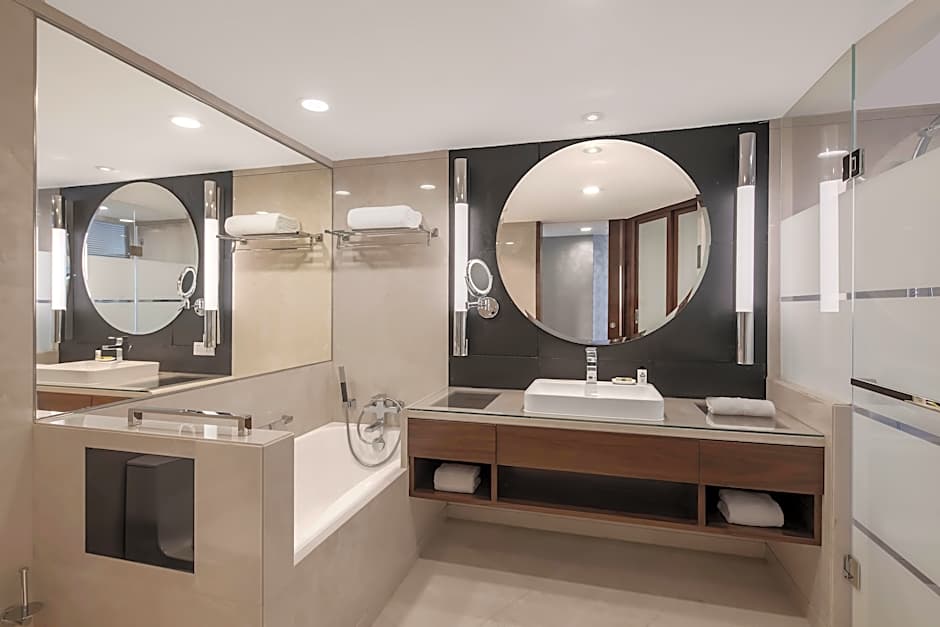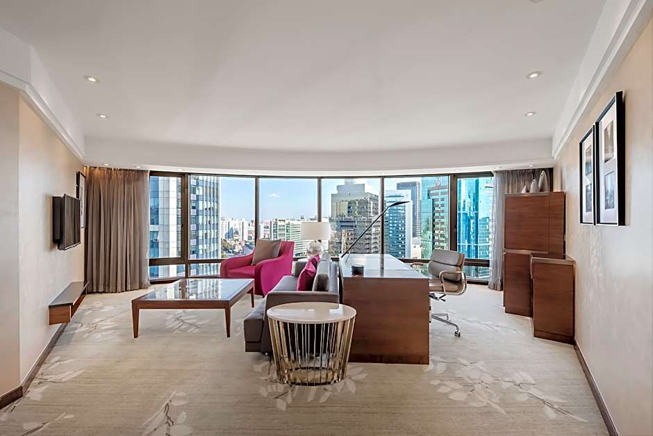 The spacious suite offers a TV with cable channels, a mini-bar, a tea and coffee maker, executive lounge access as well as city views. The unit has 1 bed.
